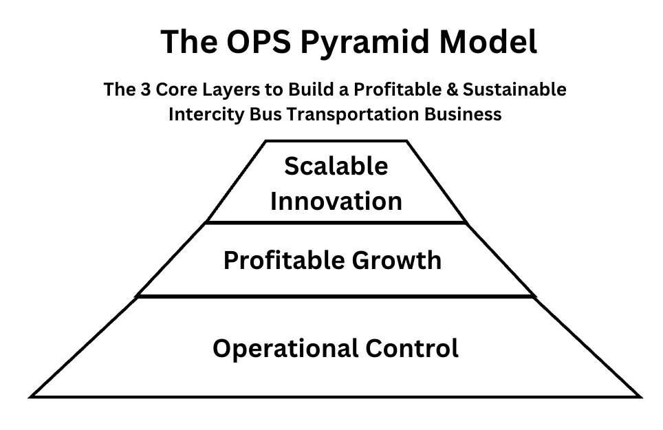 You may know one or two remarkably successful bus companies. Behind their branded buses and nationwide network is a simple, powerful model: the OPS Pyramid. It’s used by leading intercity bus transportation companies like FlixBus in Europe, GIGM in Nigeria, and Intercape in South Africa to deliver consistent, impressive results. This is the framework that can help you build a sustainable and profitable bus company.